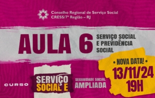 Aula 6 do Curso Serviço Social e Seguridade Social Ampliada tem nova data: 13 de novembro