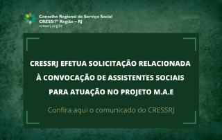 O CRESS Rio de Janeiro encaminhou solicitação para a PROSSIM em virtude do processo seletivo para o Projeto M.A.E, que convocou para atuação um número expressivo de assistentes sociais. […]