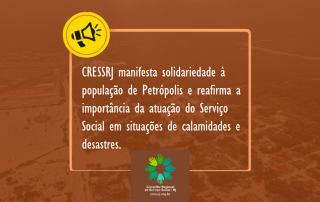 O Conselho Regional de Serviço Social manifesta sua solidariedade à população de Petrópolis diante do contexto de desastre no município e vem reafirmar a importância da atuação do Serviço Social e de nossas prerrogativas profissionais. [...]
