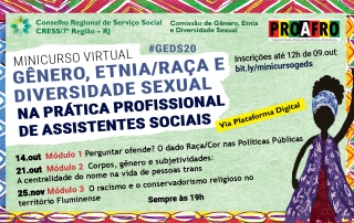 As inscrições para o minicurso virtual ‘Gênero, Etnia/Raça e Diversidade Sexual na prática profissional de Assistentes Sociais’ estão abertas até às 12h do dia 9 de outubro. A atividade compõe a programação alusiva aos 20 [...]