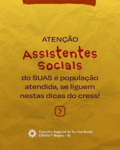 ATENÇÃO ASSISTENTES SOCIAIS DO SUAS E POPULAÇÃO ATENDIDA, SE LIGUEM NESTAS DICAS DO CRESS!