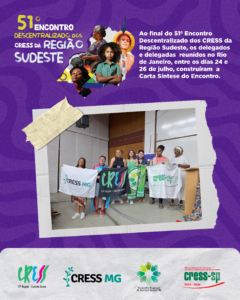 Nós, assistentes sociais, presentes no 51º Encontro Descentralizado do Conjunto CFESS-CRESS da Região Sudeste, entre os dias 24 a 26 de julho de 2024, na cidade do Rio de Janeiro, defendemos os princípios éticos da profissão, reafirmando a “liberdade enquanto valor ético central”, assim como o “empenho na eliminação de todas as formas de preconceito, incentivando o respeito à diversidade, a participação de grupos socialmente discriminados e à discussão das diferenças”. O encontro é um espaço coletivo político-administrativo, consultivo, democrático, formativo e de trocas que reúne as delegações dos estados do Espírito Santo, Rio de Janeiro, Minas Gerais e São Paulo.