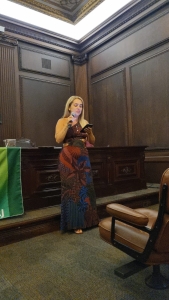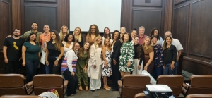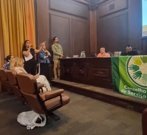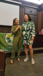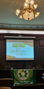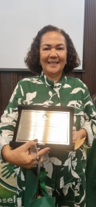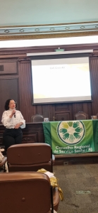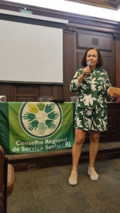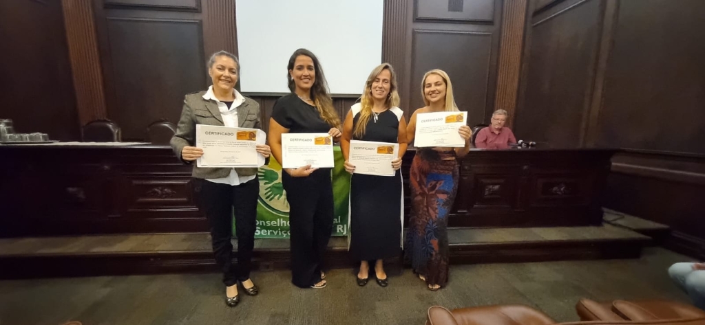 Após a apresentação dos setores, houve uma femenagem à assistente social Maria de Fátima Valentim Pessanha, Agente Fiscal do CRESS-RJ, que atuava na Comissão de Orientação e Fiscalização desde o ano de 2003 e se aposentou, recentemente: “Vocês me tiraram lágrimas. Quero aqui agradecer muitíssimo a oportunidade e a confiança no meu trabalho”, disse Fátima, que recebeu a placa de homenagem das mãos da presidenta Marcia Nogueira e da Conselheira Mossicleia Mendes.