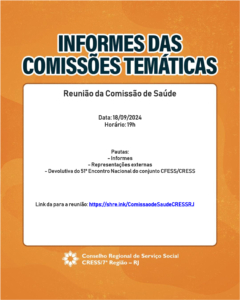 Link da para a reunião: https://shre.ink/ComissaodeSaudeCRESSRJ