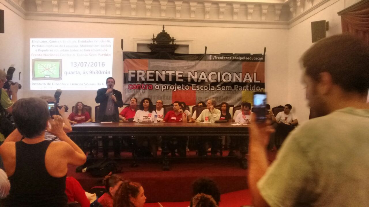 Com apoio de diversas entidades, foi lançado dia 13 de julho, no Rio, a Frente Nacional contra “Escola sem partido”. O evento aconteceu , no Largo de São Francisco de Paula, 1, no Centro do Rio, no Instituto de Filosofia e Ciências Sociais da UFRJ