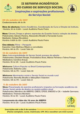 Ver Imagem Maior II Semana Acadêmica do Curso de Serviço Social melhorweb2017-10-09T14:16:41-03:0029/09/2017 14:32|Categorias: Eventos|Nenhum Comentário Notícias Relacionadas Assembleia Ordinária para escolha de Delegação dos Encontros Descentralizado e Nacional 2025 14/05/2025 14:38 Maio – Assistentes Sociais e seu mês 05/05/2025 16:30 1a Reunião Ampliada do Comitê Anticapacitista – Inscrições encerradas 12/03/2025 16:41 Dias de Ativismo contra o Racismo – Dia 25 de março – 18h 12/03/2025 13:23 Reunião Comissão Sociojurídica 25/10/2024 12:46 Assembleia Geral Ordinária: confira edital de convocação 03/05/2024 16:58