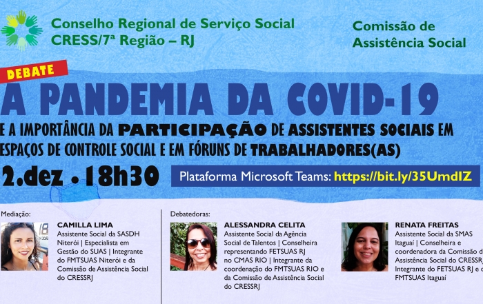 Reunião Ordinária da Comissão de Assistência Social Data: 11/08/2021 Horário: 19h Link (Plataforma Microsoft Teams): https://bit.ly/359aJAp Para participar da lista de transmissão de e-mails da Comissão, recebendo pauta e outras informações, preencha o formulário bit.ly/FormularioCAS_CRESSRJ [...]