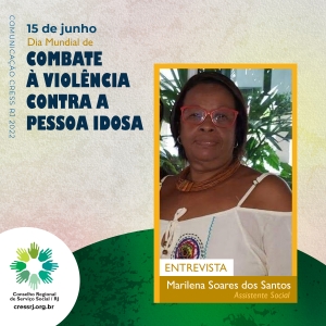 Para marcar o dia Mundial de Combate à Violência Contra a Pessoa Idosa, 15 de junho, o CRESS Rio conversou com a assistente social e pessoa idosa, Marilena Soares dos Santos. Marilena é formada pela Universidade Gama Filho, com pós -graduação Lato Senso em Gerontologia, aposentada da Fundação Leão Xlll e servidora da Prefeitura Municipal de Itaguaí lotada na Secretaria de Assistência Social de Itaguaí.