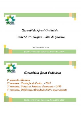 Assembleia Geral Ordinária – Pauta : prestação de contas, propostas e anuidades