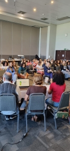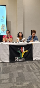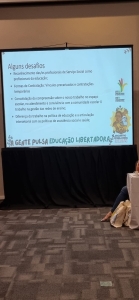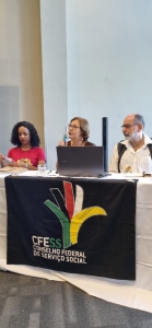 Na parte da tarde, o primeiro dia de discussão foi retomado por volta das 15h, com a apresentação do Painel 1: “A atuação do Conjunto CFESS-CRESS no âmbito da Orientação e Fiscalização e incidências políticas sobre o trabalho profissional na educação básica”, que contou com a fala de representantes do CRESS/SC, CRESS/AL, CRESS/AC, CRESS/CE e CRESS/MG.