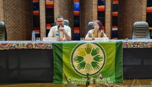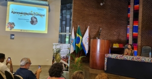 Iniciamos o seminário com as boas-vindas feita pelo mestre de cerimônia, o assistente social e professor universitário Paulo Sundi, que chamou as integrantes da mesa de abertura e, em seguida, o momento cultural e poético feito por Daisy Kostta e a também assistente social Yasmim Gimenes Puri.