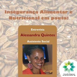 Para falar sobre a LOSAN e o momento atual, o CRESS Rio de Janeiro convidou a assistente social Alessandra Quintes, que já atuou como secretária executiva no Conselho de Segurança Alimentar e Nutricional do Município do Rio de Janeiro (Consea-Rio) e no Conselho Municipal dos Direitos da Criança e do Adolescente (CMDCA). Vale acrescentar, ainda, que Alessandra também foi conselheira municipal no Conselho Municipal de Assistência Social (CMAS) e no Conselho Municipal dos Direitos da Pessoa com Deficiência (COMDEF-RIO) ambos da cidade do Rio de Janeiro.