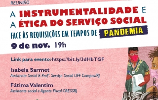 No próximo dia 09/11 o Núcleo de Base do CRESSRJ (NUCRESS) Integração e Liberdade promoverá a reunião online ‘A Instrumentalidade e a Ética do Serviço Social face às requisições em tempos de pandemia’. Os NUCRESS [...]
