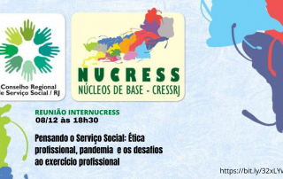 No próximo dia 09/11 o Núcleo de Base do CRESSRJ (NUCRESS) Integração e Liberdade promoverá a reunião online ‘A Instrumentalidade e a Ética do Serviço Social face às requisições em tempos de pandemia’. Os NUCRESS [...]